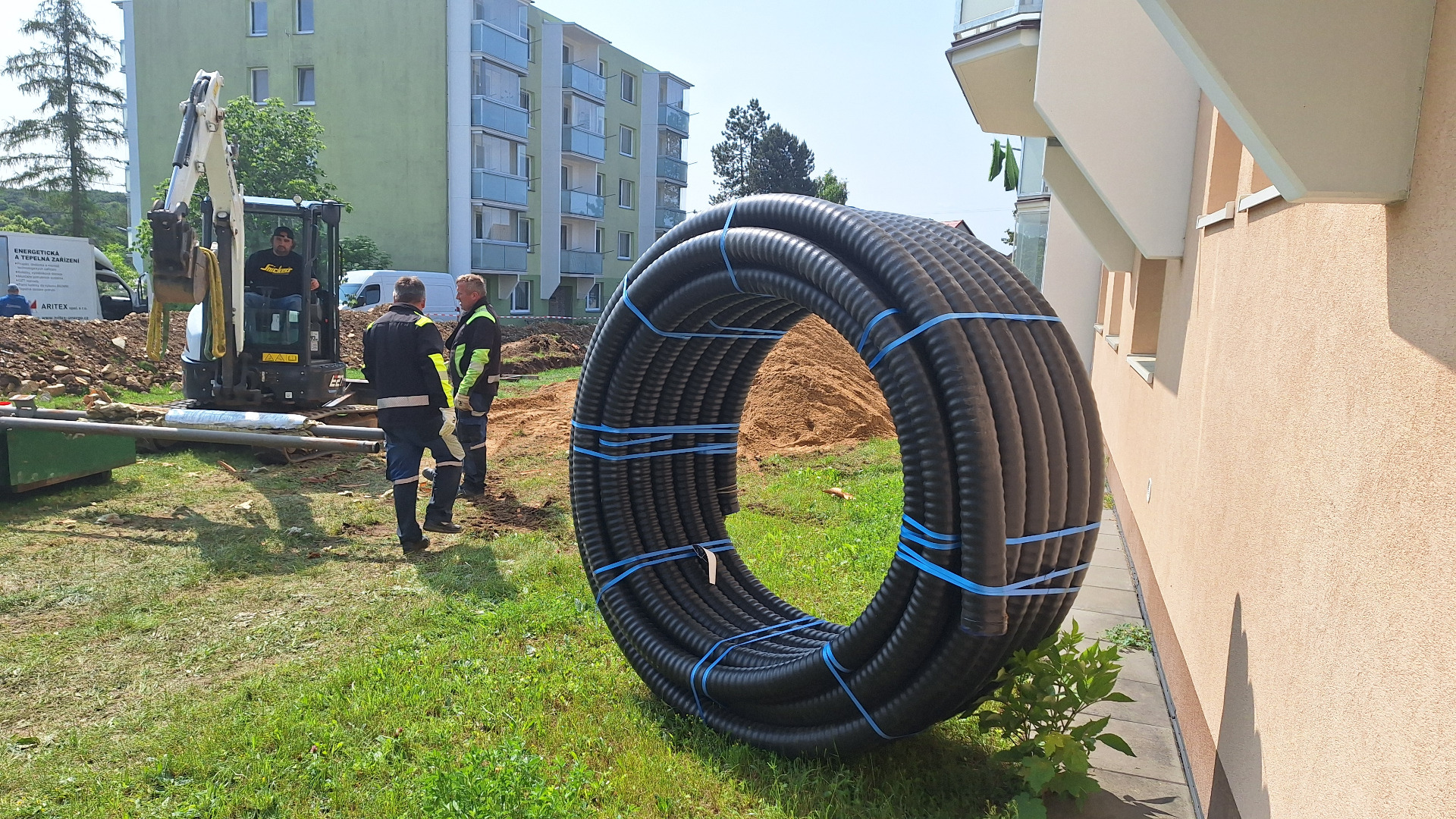 Dodávka potrubí CALPEX pro rozvod topení v obci z BPS